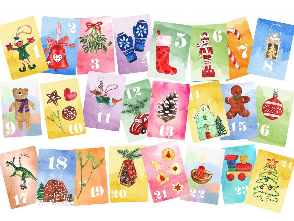 - 24 velkých nálepek s čísly 1-24, vel. 9 x 12 cm (cca A6)