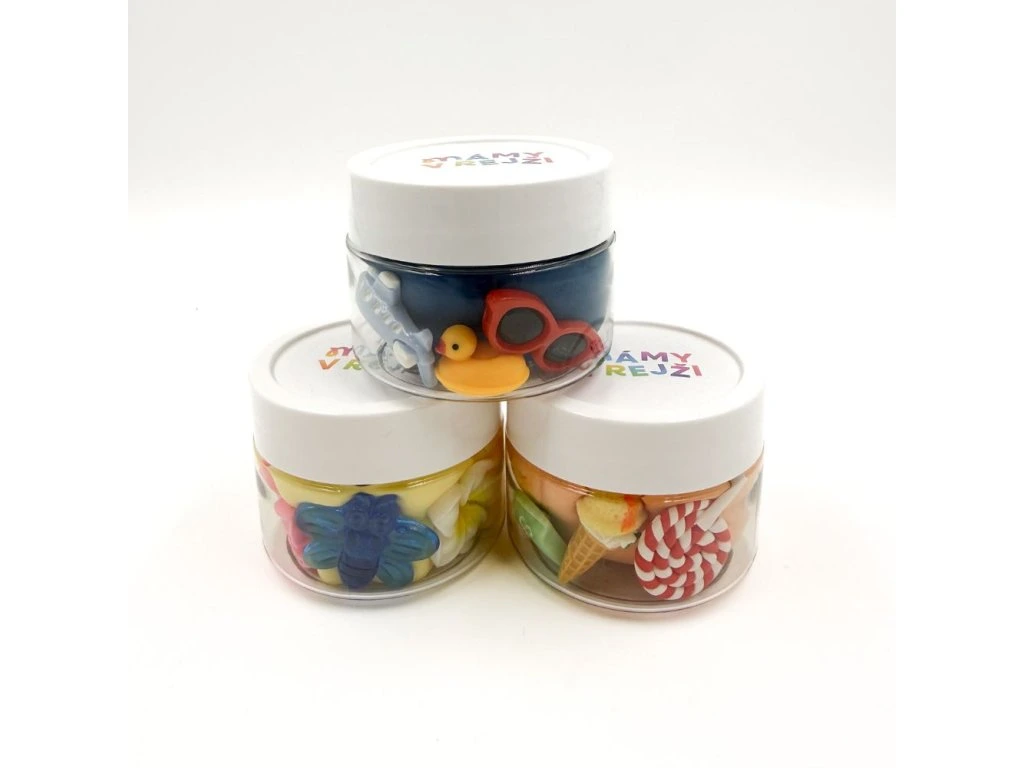 Nevhodné pro děti do 3 let, obsahuje drobné části. Uchovávejte v uzavřené dóze.