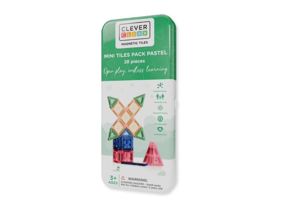 Cleverclixx - Cestovní magnetická mini stavebnice PASTELOVÁ 28 ks