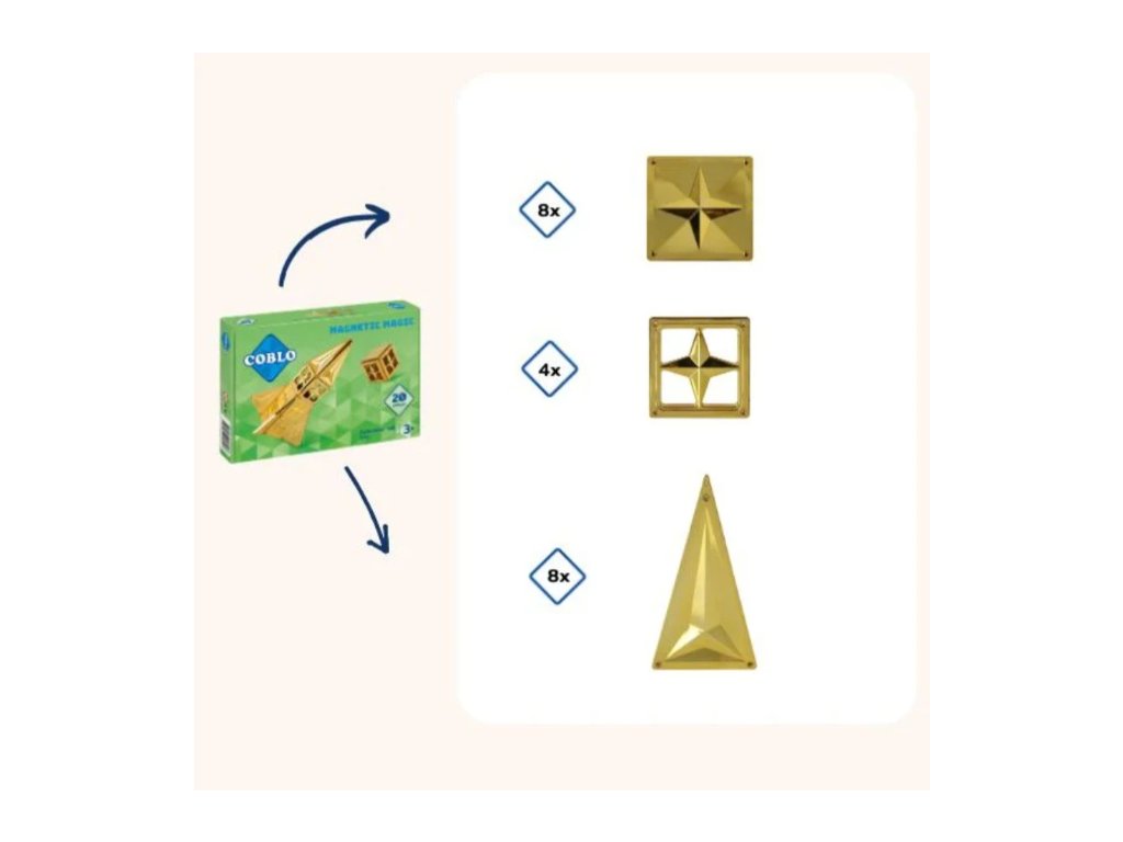 Zlatá stavebnice Coblo je speciální edice magnetické stavebnice, která obsahuje dílky v elegantní zlaté barvě.