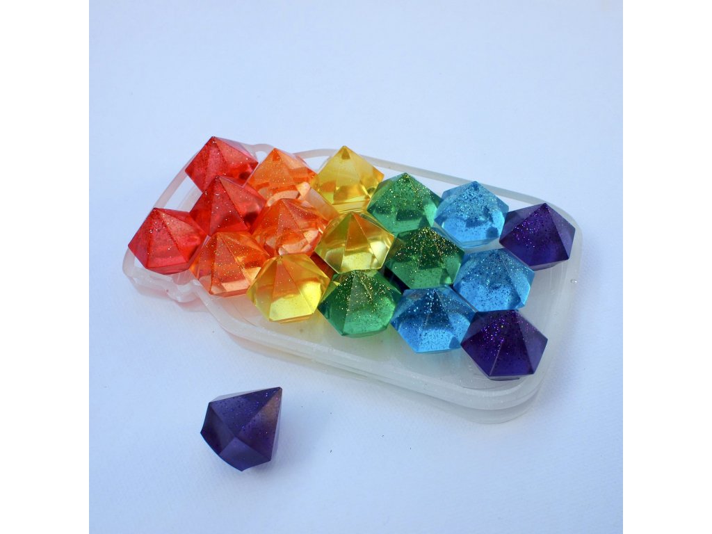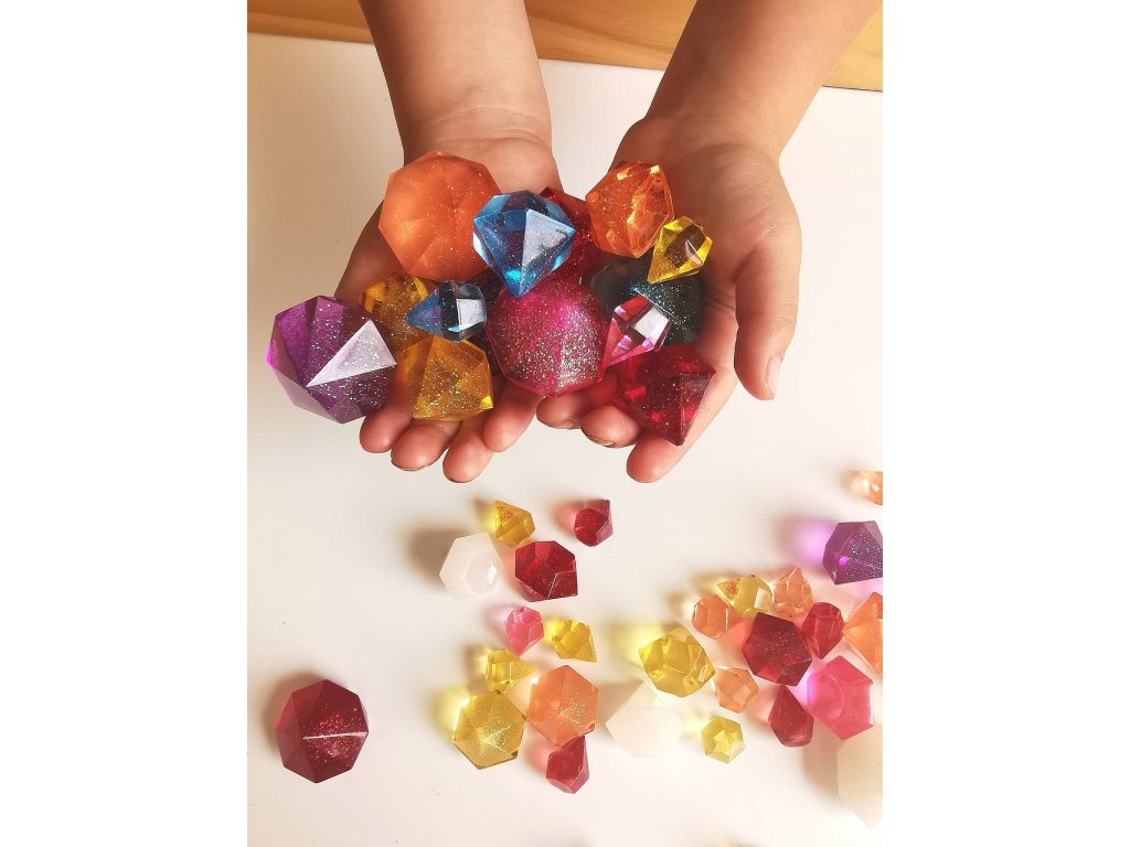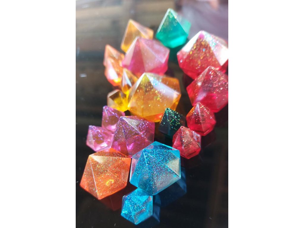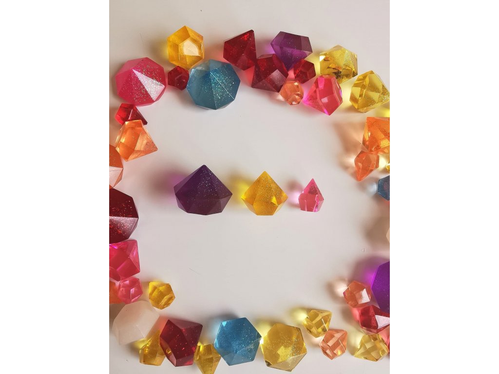Diamanty z pryskyřice jsou hezkým doplňkem ke smyslohraní. Můžete vybírat mezi třemi velikostmi. Pokud si přejete konkrétní barvy, napište je do poznámky. Běžně máme skladem duhové barvy. Počítejte s delším dodáním, pokud vyberete barvu, která není skladem.