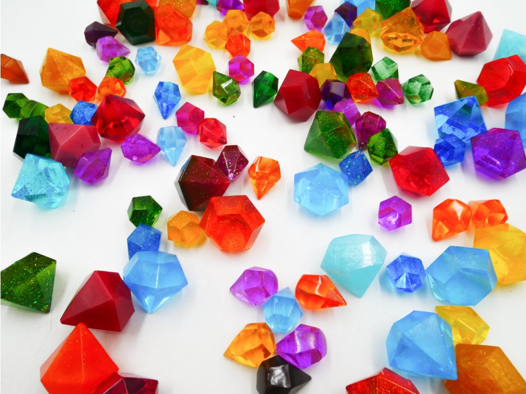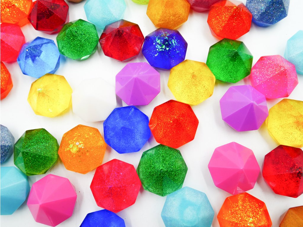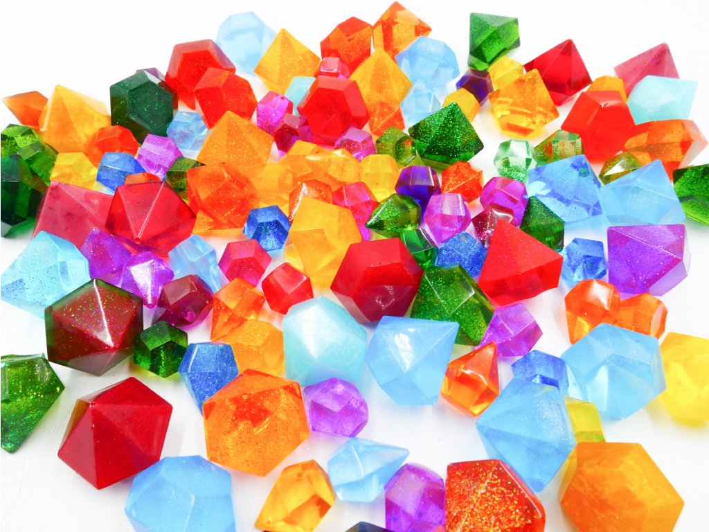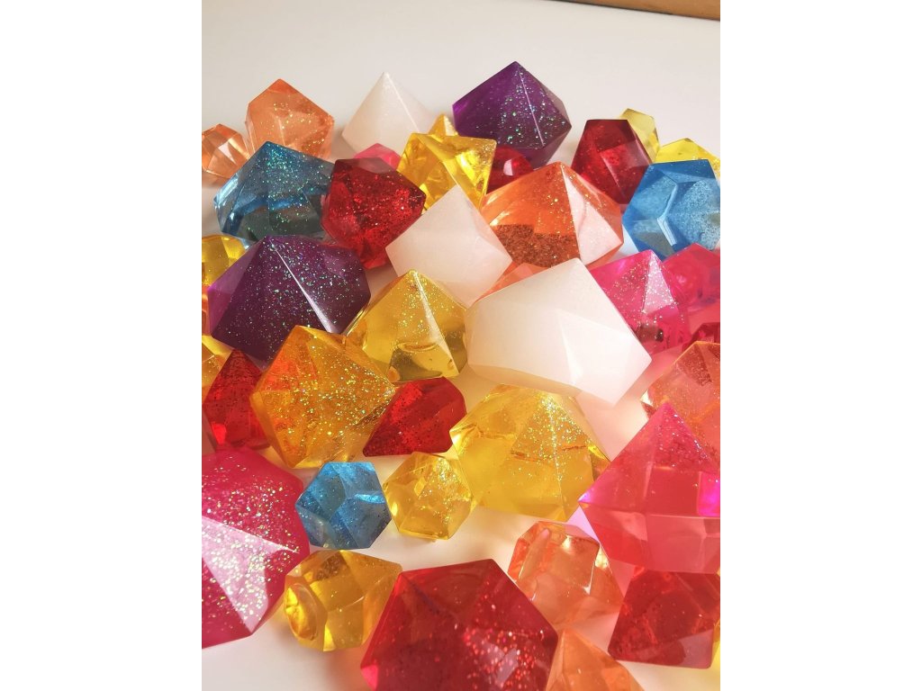 Diamanty z pryskyřice jsou hezkým doplňkem ke smyslohraní. Můžete vybírat mezi třemi velikostmi. Pokud si přejete konkrétní barvy, napište je do poznámky. Běžně máme skladem duhové barvy. Počítejte s delším dodáním, pokud vyberete barvu, která není skladem.