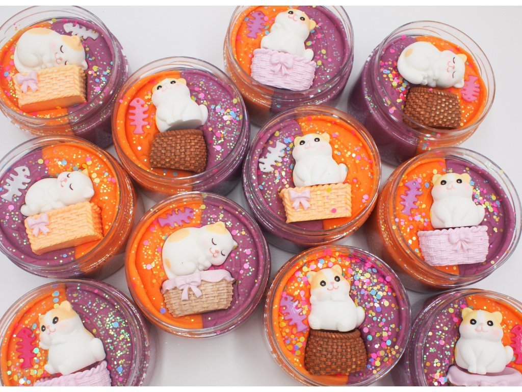 Dvoubarevná domácí modelína 250g, třpytky, konfety, dekorace 3ks - kočička, kostra ryby, košík.