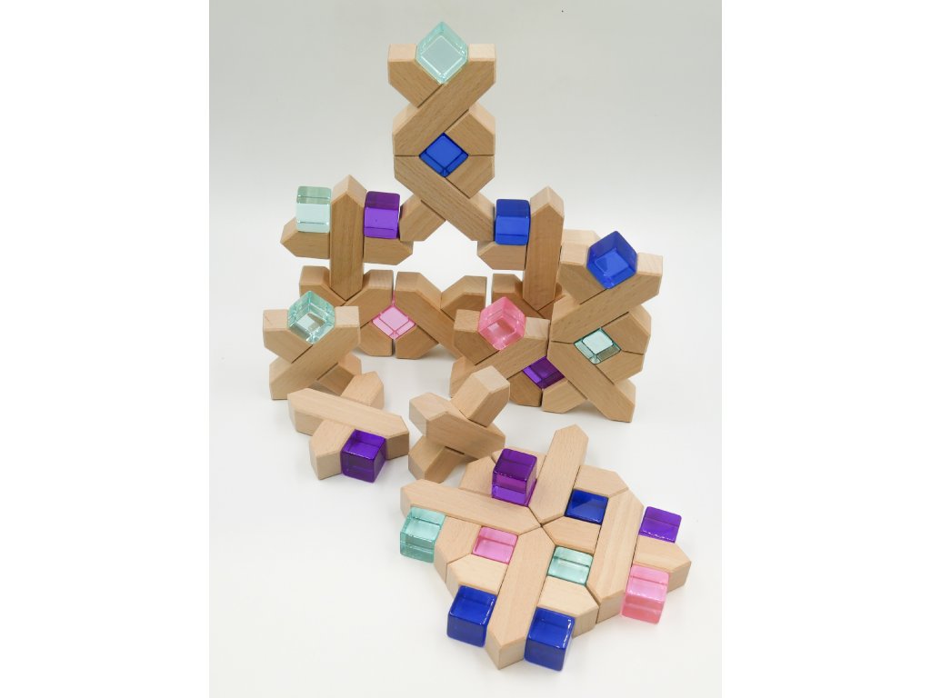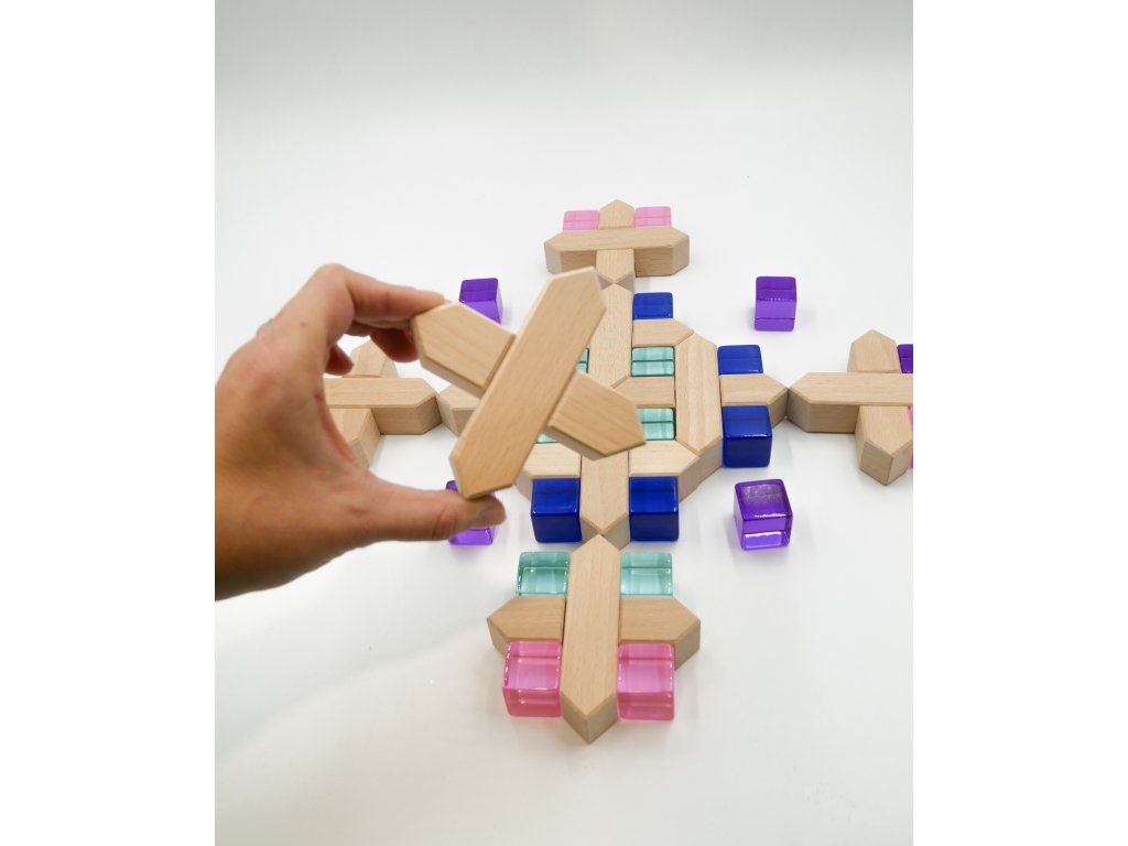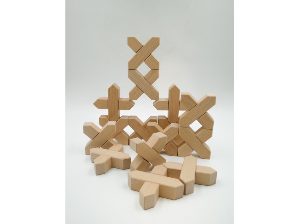 Dřevěné kostky ve tvaru X využijete ke stavění, poznávání fyzikálních zákonů či ke tvoření malých světů.