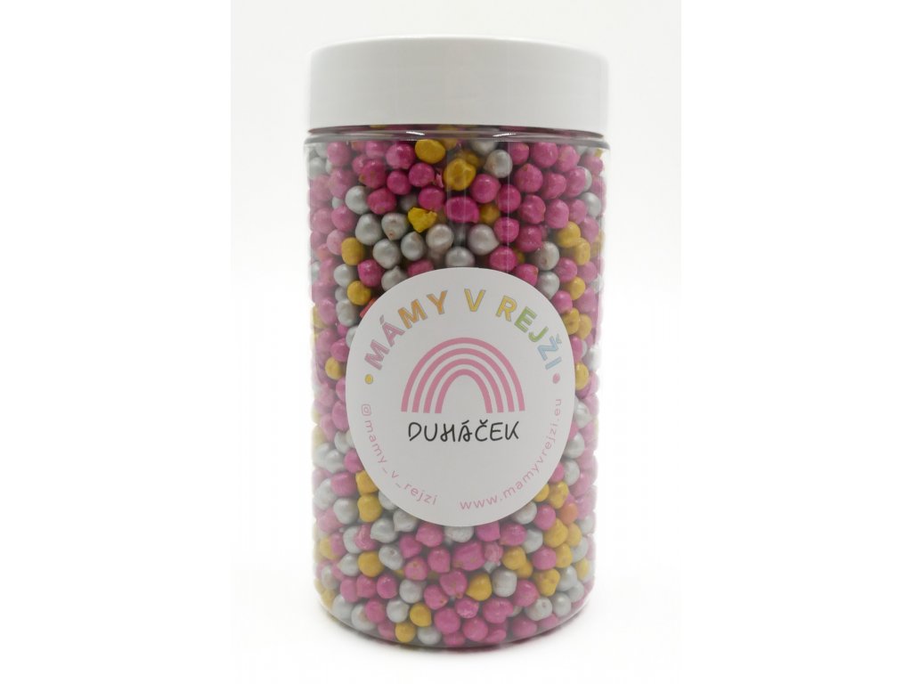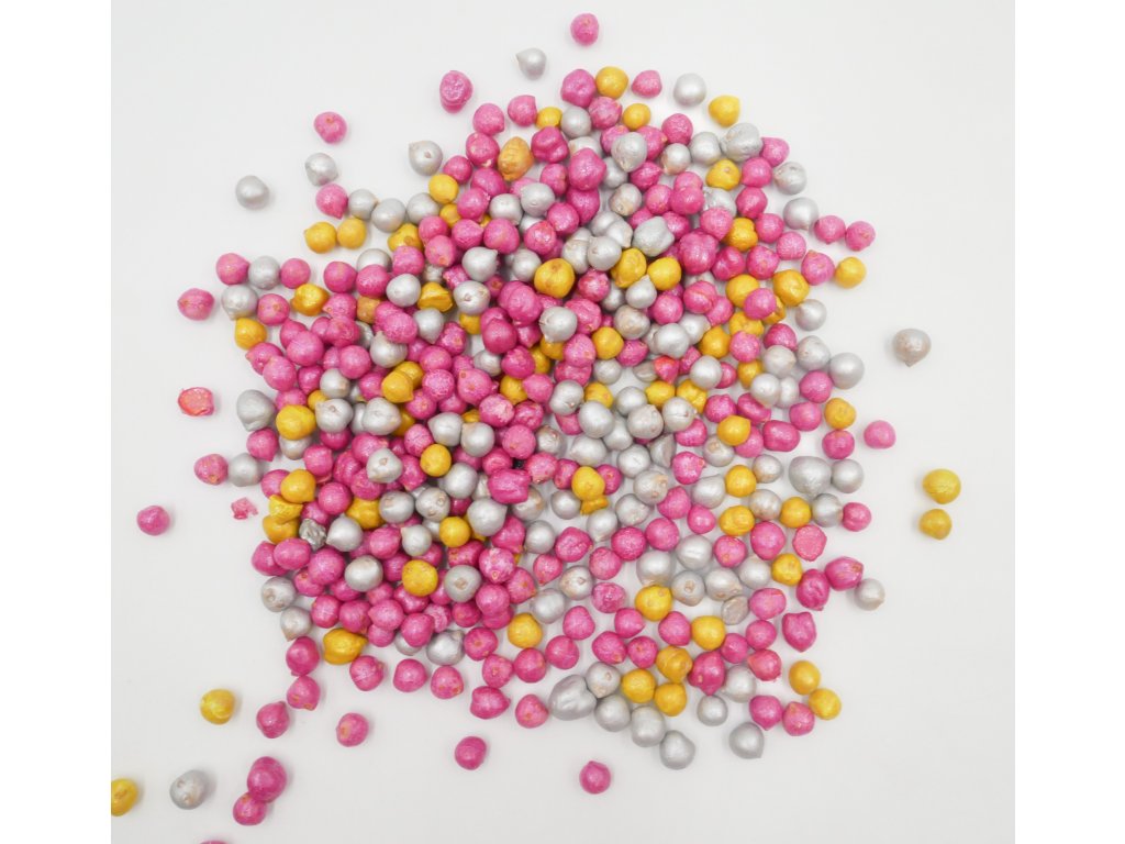Barevný sypký materiál je základní pomůckou při smyslohraní. Je příjemné se prohrabávat smyslovým materiálem, hledat v něm věci, nabírat a přesypávat. Tvořit z něj různé světy zabaví nejedno dítě a dokonce i dospělé. Tento mix je ideální na jednorožčí světy, ale využijete i na jiné tématiky.