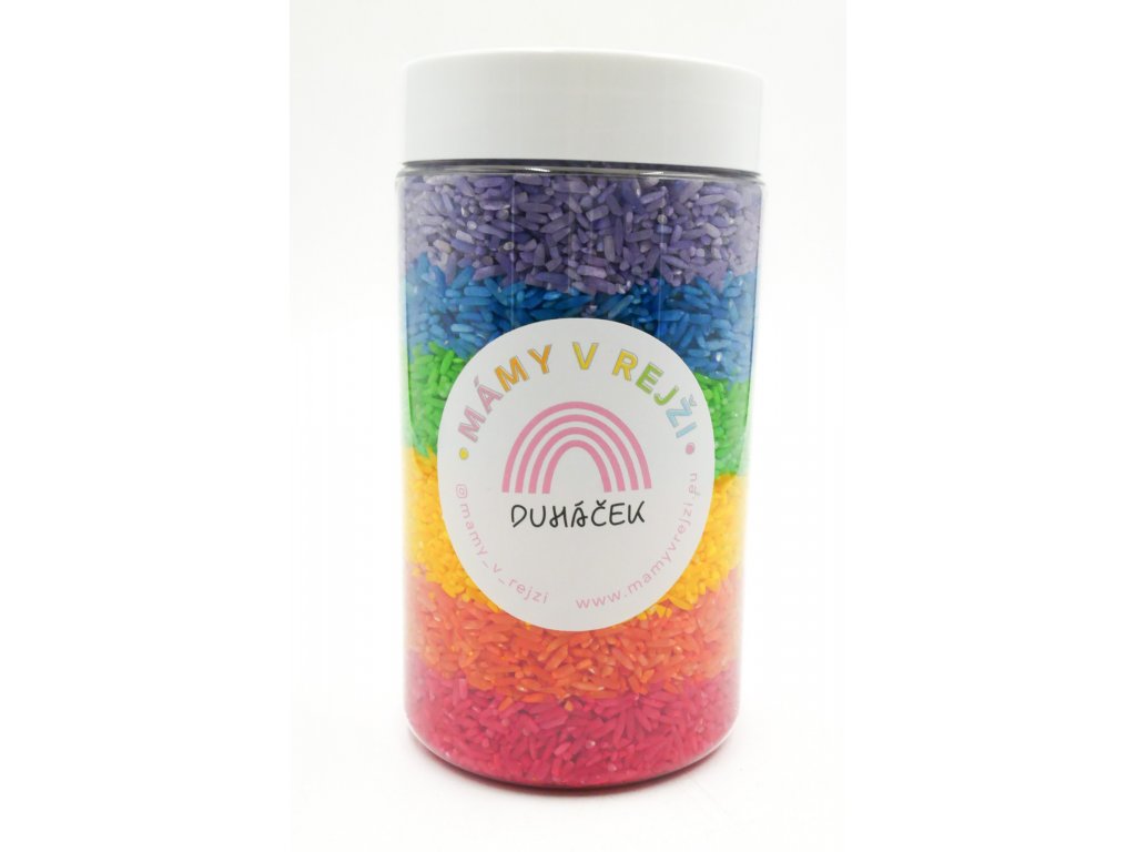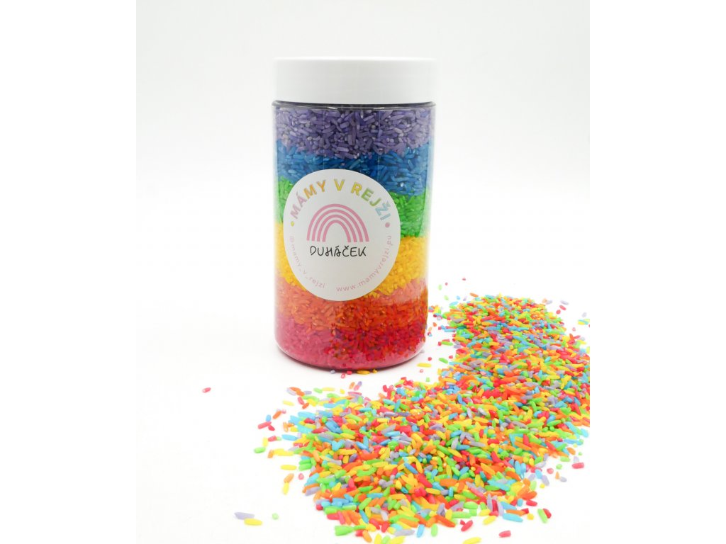 Cca 690g barevné rýže v 6ti barvách duhy.