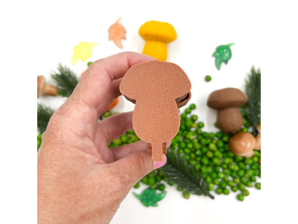 Ekologicky rozložitelná pomůcka na tvoření hub slouží k rozvoji jemné motoriky, fantazie, tvořivosti. Využijete ji s modelínou, či kinetickým pískem.