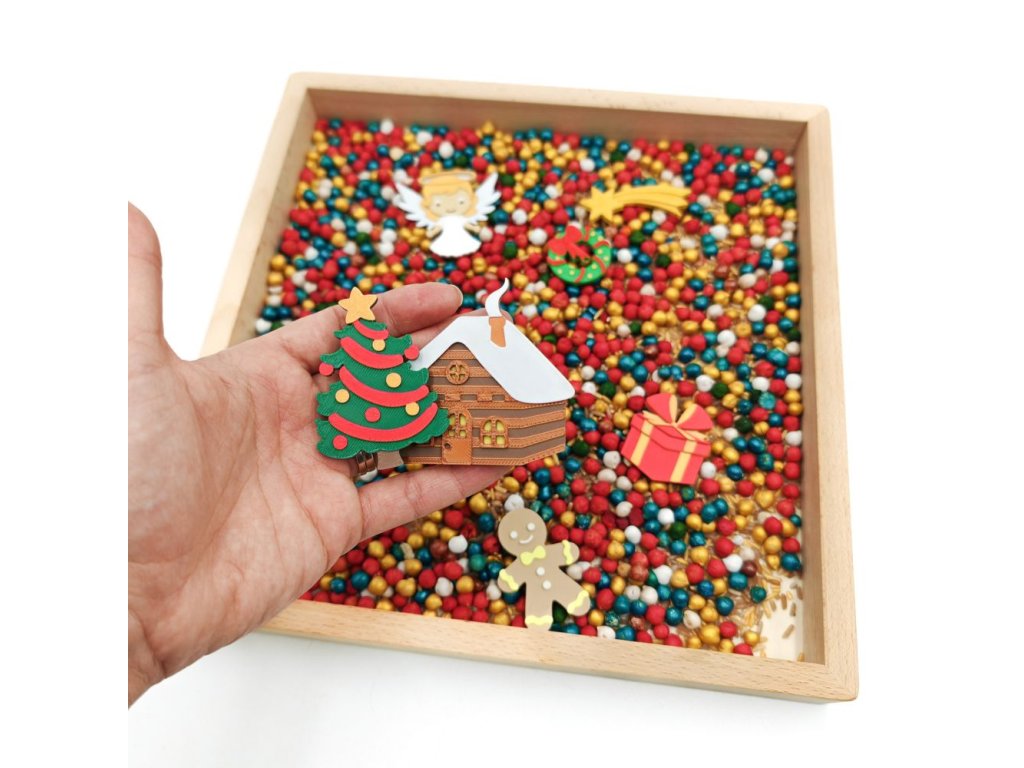 Kreativní sada miniaturních hraček, které dětem ukáží Vánoce. Jsou vhodné na obtiskávání do modelíny, či kinetického písku. Také je můžete poschovávat do barevného sypkého materiálu, super budou i do vodních či matlavých materiálů, jako jsou vodní perly, oobleck apod.