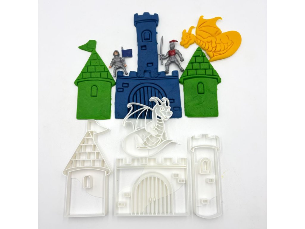 Sada obsahuje 4 ks vykrajovátek, se kterými děti vytvoří draka a hrad s věžičkami.