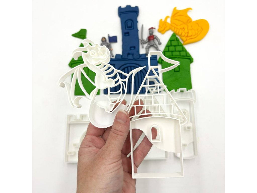 Přemoci draka a obsadit jeho hrad? S naší sadou vykrajovátek to je možné! Ideální k Mamolíně a nebo jako doplněk ke kouzelnému kinetickému písku. Rozvíjí představivost a jemnou motoriku.