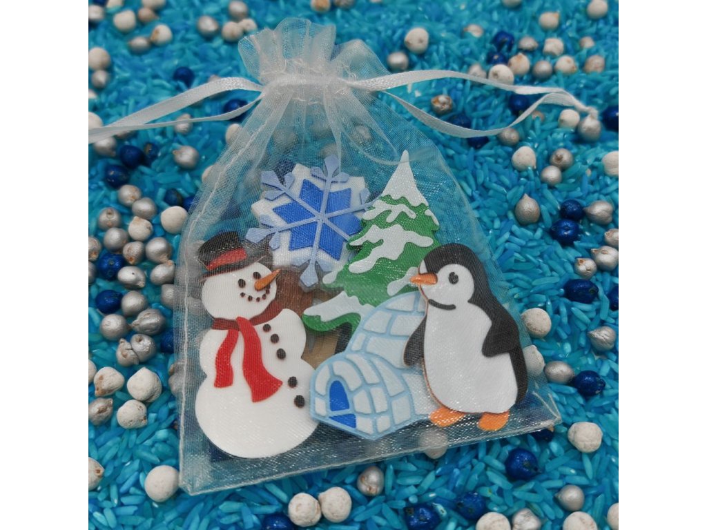 Kreativní sada miniaturních hraček, které dětem ukáží zimu. Jsou vhodné na obtiskávání do modelíny, či kinetického písku. Také je můžete poschovávat do barevného sypkého materiálu, super budou i do vodních či matlavých materiálů, jako jsou vodní perly, oobleck apod.