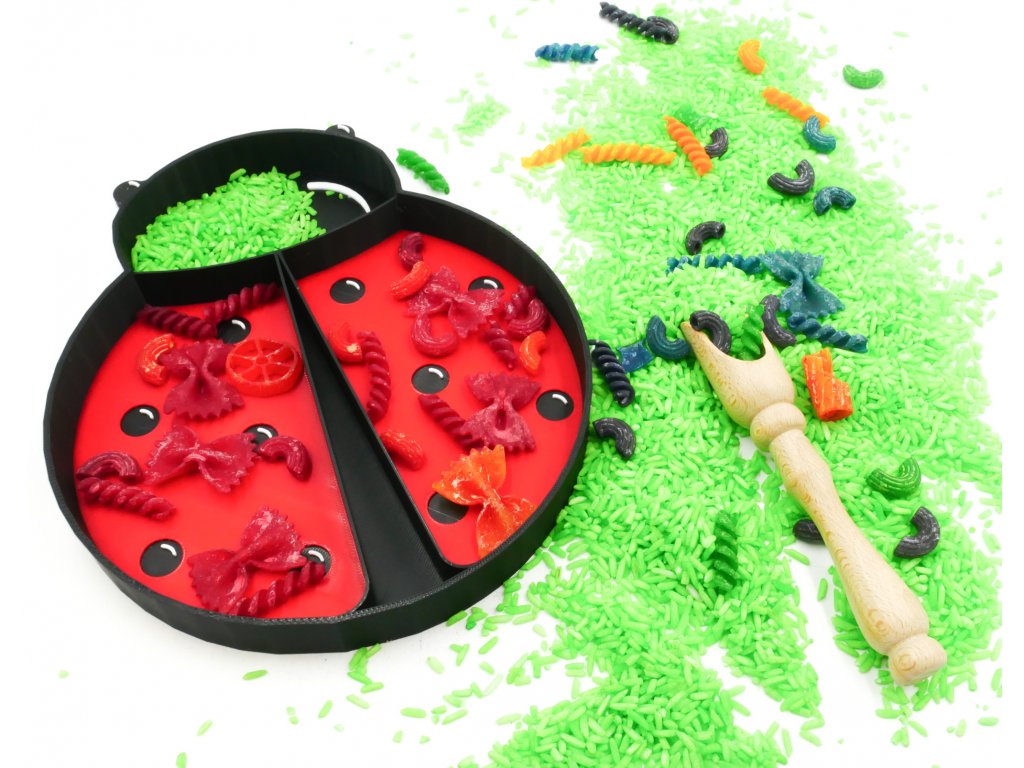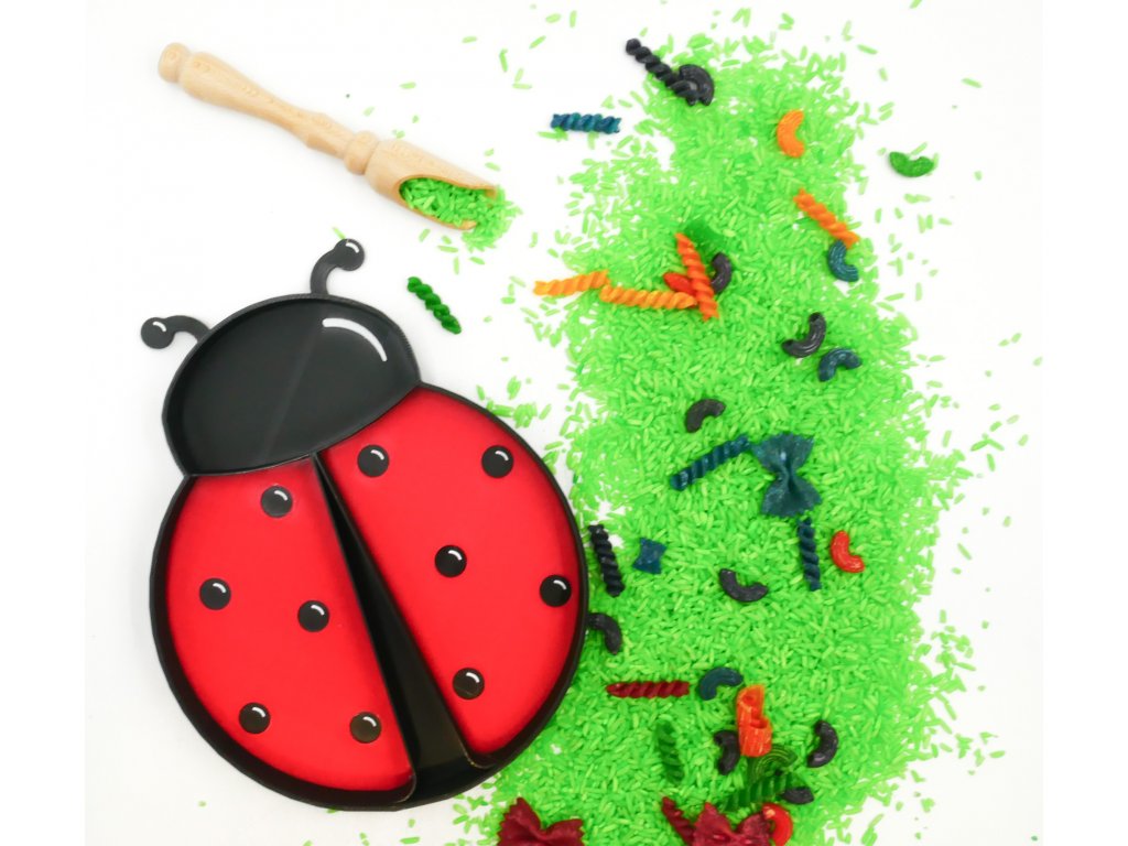 Ekologicky rozložitelný tácek ve tvaru berušky slouží k rozvoji jemné motoriky, fantazie, tvořivosti. Využijete ho na hru se sypkým materiálem, s modelínou, či kinetickým pískem a skvělý bude i na mokré hraní či na hru s vodními perlami. Skvěle poslouží k různým šumicím lektvarům či ke hře s otevřeným koncem.