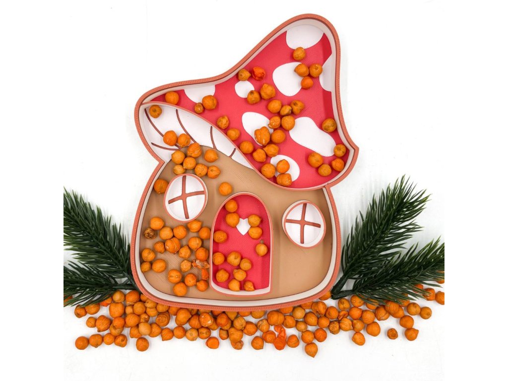 Ekologicky rozložitelný tácek ve tvaru houbového domečku slouží k rozvoji jemné motoriky, fantazie, tvořivosti. Využijete ho na hru se sypkým materiálem, s modelínou, či kinetickým pískem a skvělý bude i na mokré hraní či na hru s vodními perlami. Skvěle poslouží k různým šumicím lektvarům či ke hře s otevřeným koncem.