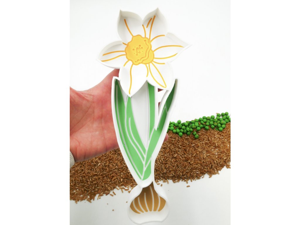 Ekologicky rozložitelný tácek ve tvaru květiny narcisu slouží k rozvoji jemné motoriky, fantazie, tvořivosti. Využijete ho na hru se sypkým materiálem, s modelínou, či kinetickým pískem a skvělý bude i na mokré hraní či na hru s vodními perlami. Skvěle poslouží k různým šumicím lektvarům či ke hře s otevřeným koncem.