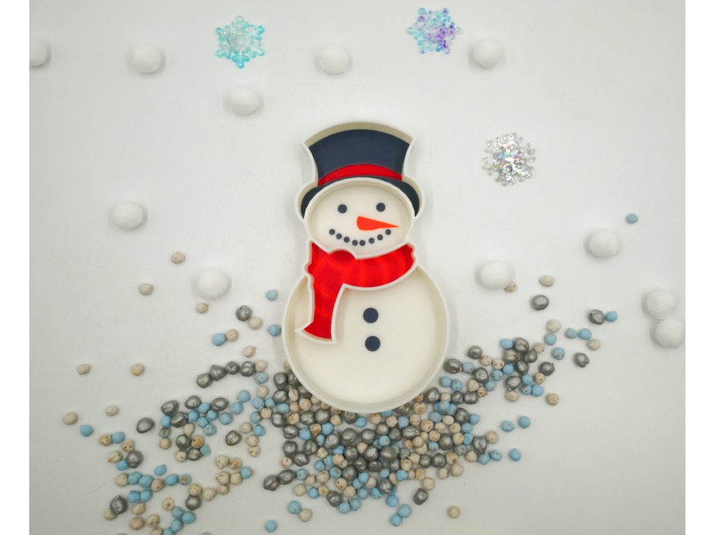 Ekologicky rozložitelný tácek ve tvaru sněhuláka slouží k rozvoji jemné motoriky, fantazie, tvořivosti. Využijete ho na hru se sypkým materiálem, s modelínou, či kinetickým pískem a skvělý bude i na mokré hraní či na hru s vodními perlami. Skvěle poslouží k různým šumicím lektvarům či ke hře s otevřeným koncem.