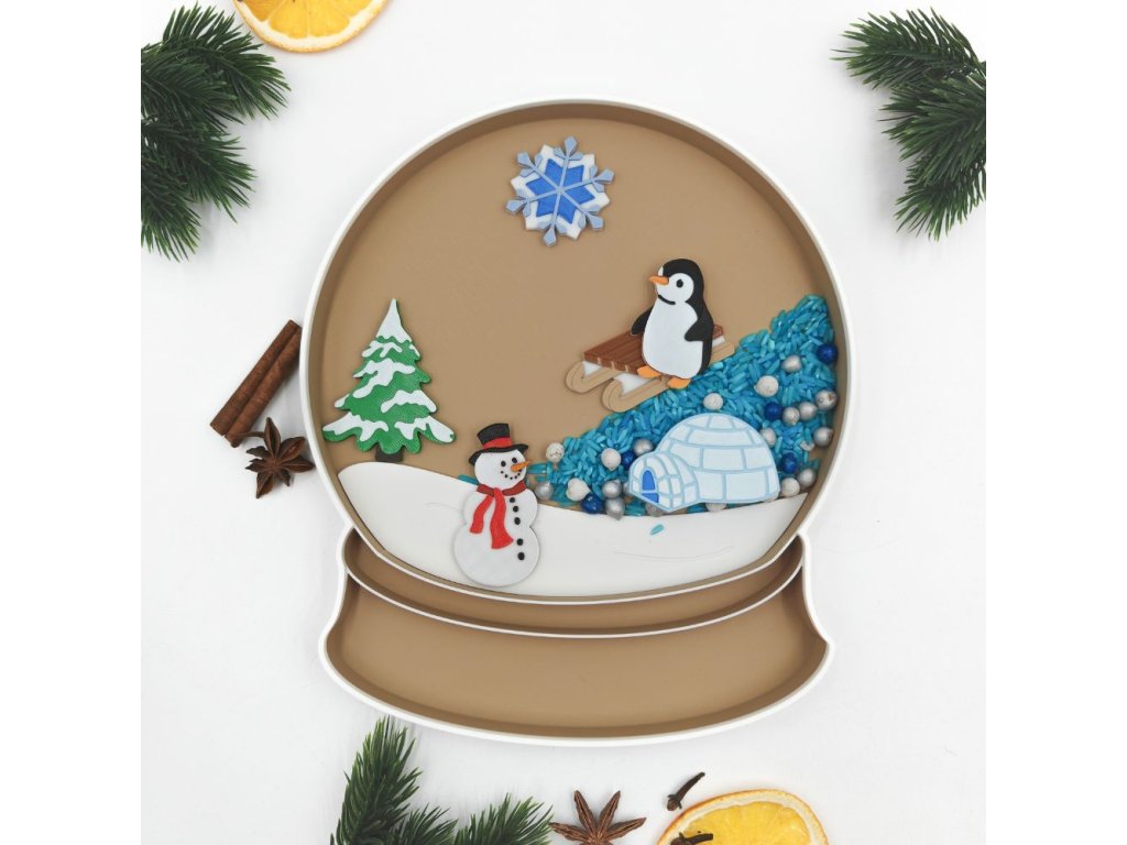Ekologicky rozložitelný tácek ve tvaru sněžítka slouží k rozvoji jemné motoriky, fantazie, tvořivosti. Vhodný na tvoření zimního nebo vánoční smyslohraní. Využijete ho na hru se sypkým materiálem, s modelínou, či kinetickým pískem a skvělý bude i na mokré hraní či na hru s vodními perlami. Skvěle poslouží k různým šumicím lektvarům či ke hře s otevřeným koncem. Doporučujeme využit se zimními miniaturami.