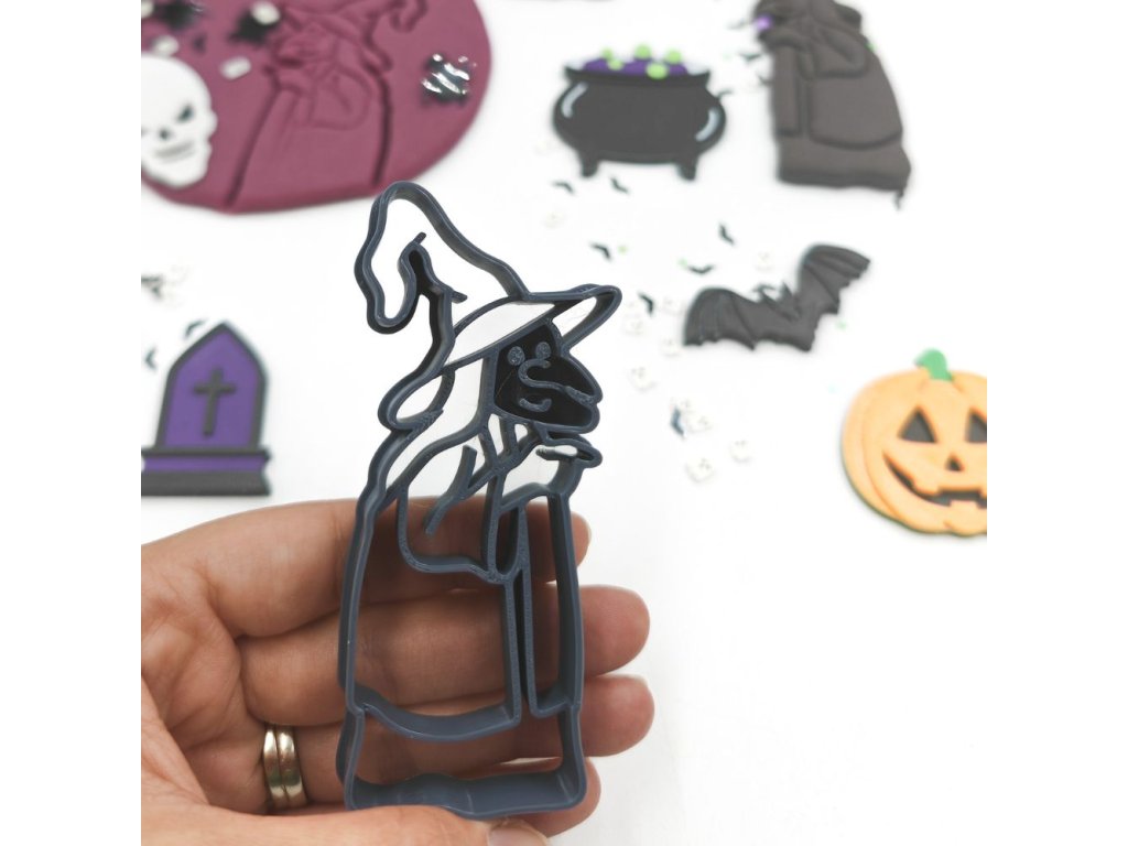 Vykrajovátko ve tvaru čarodějnice dodáváme v černé barvě nebo podle barevně skladových zásob.