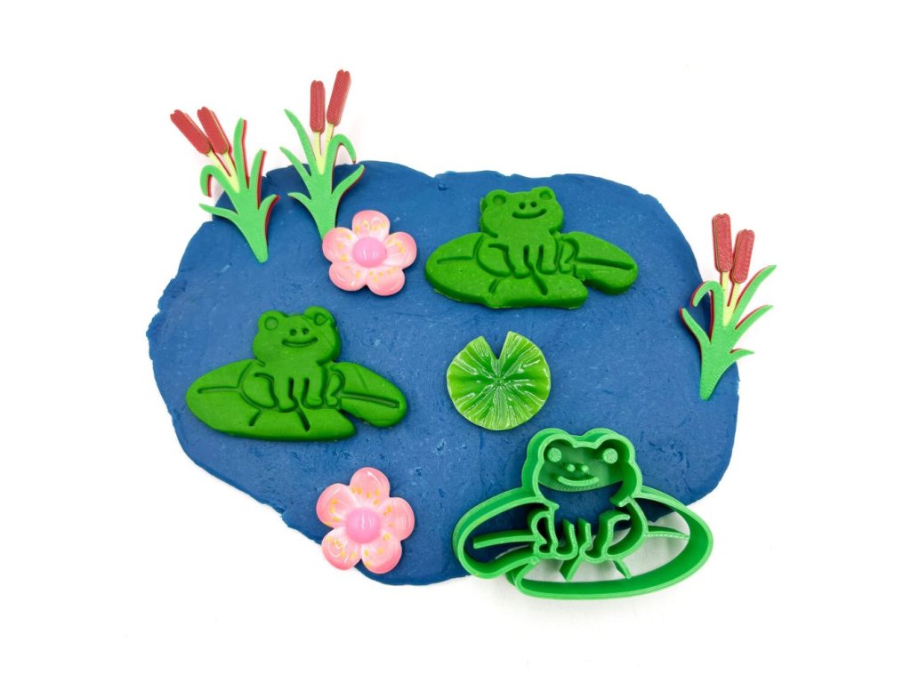 Kvák, žbluňk a je pryč! S naším žabičkovým vykrajovátkem vám už žádná žába nezmizí. Vyzkoušejte ji nejen s jarními Mamolínami. Lehce se s ním obtiskává, rozvíjí jemnou motoriku a slovní zásobu.