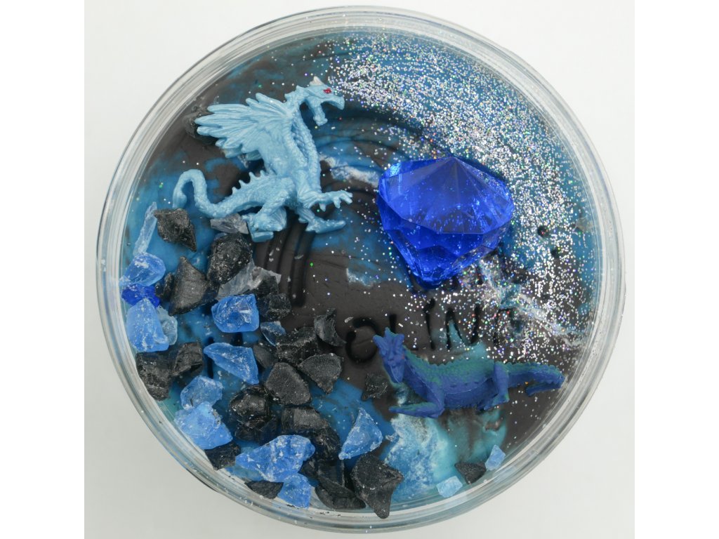 250g měkkoučké čtyřbarevné domácí modelíny, 2ks figurky draka, dekorativní kamínky, velký diamant