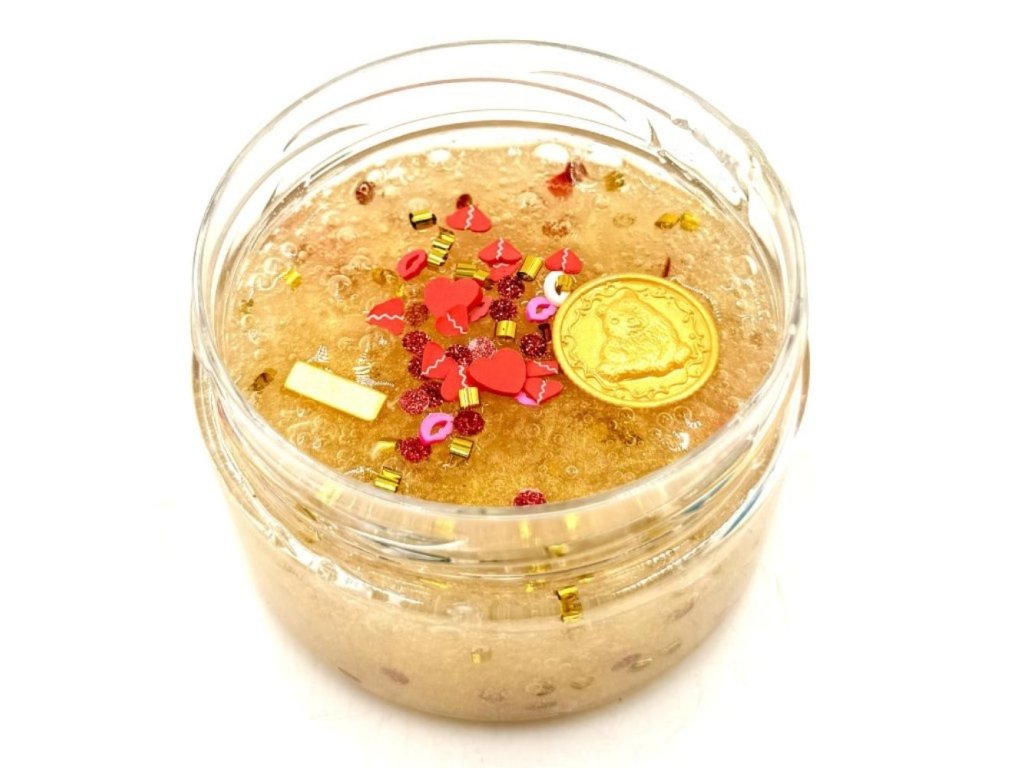 150g gelového slizu, konfety, třpytky, korálky, mince, krystal a zlatá cihlička