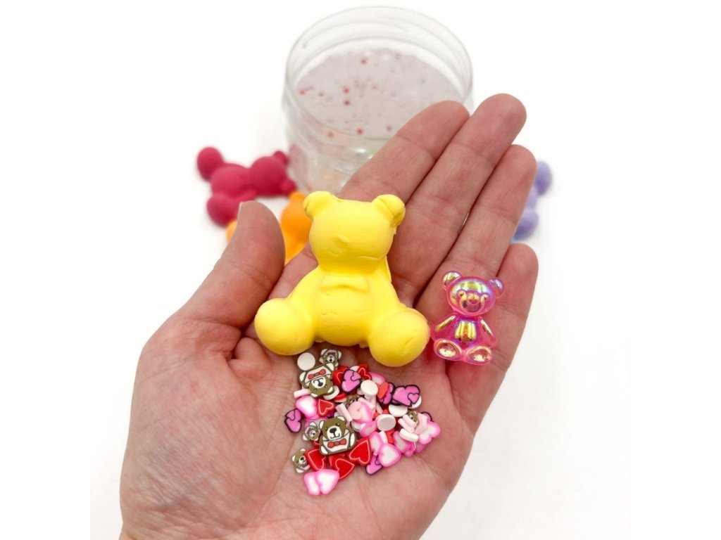 150g gumové slizu, třpytky, dekorace medvídek a pěnový medvídek ve vámi vybrané barvě