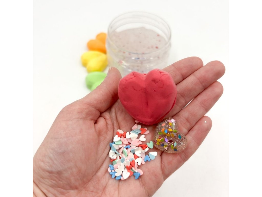 150g gumové slizu, třpytky, dekorace srdíčko a pěnové srdce ve vámi vybrané barvě