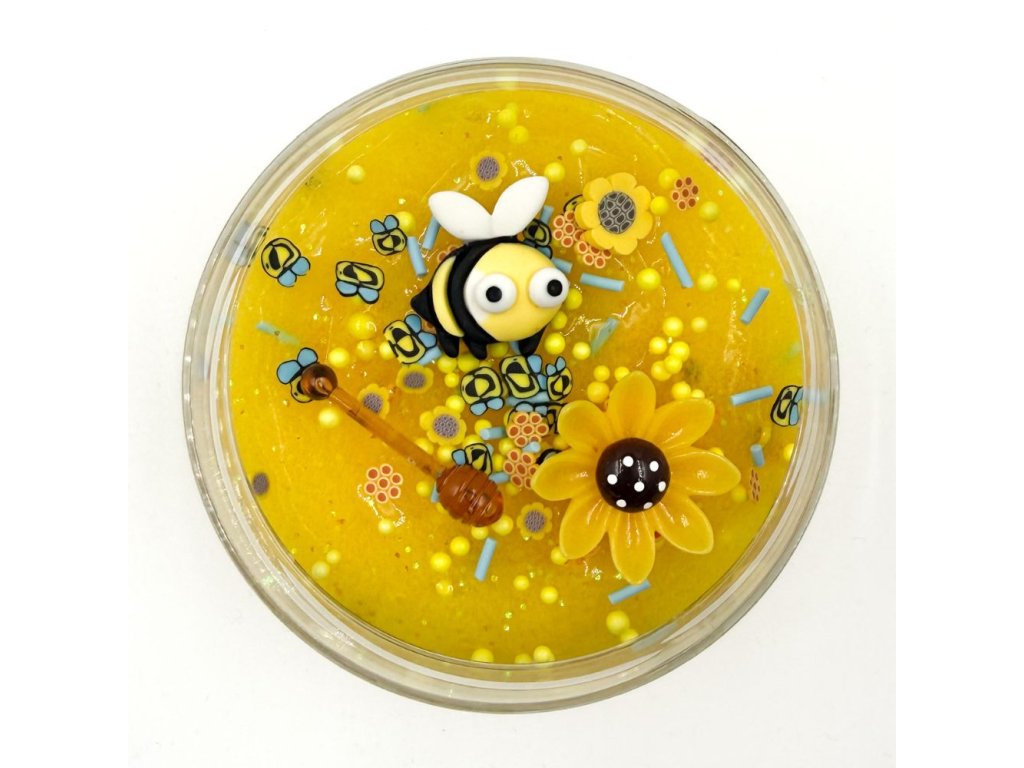 150g gumové slizu, konfety, třpytky, pěnové kuličky, včela, slunečnice, medonoska