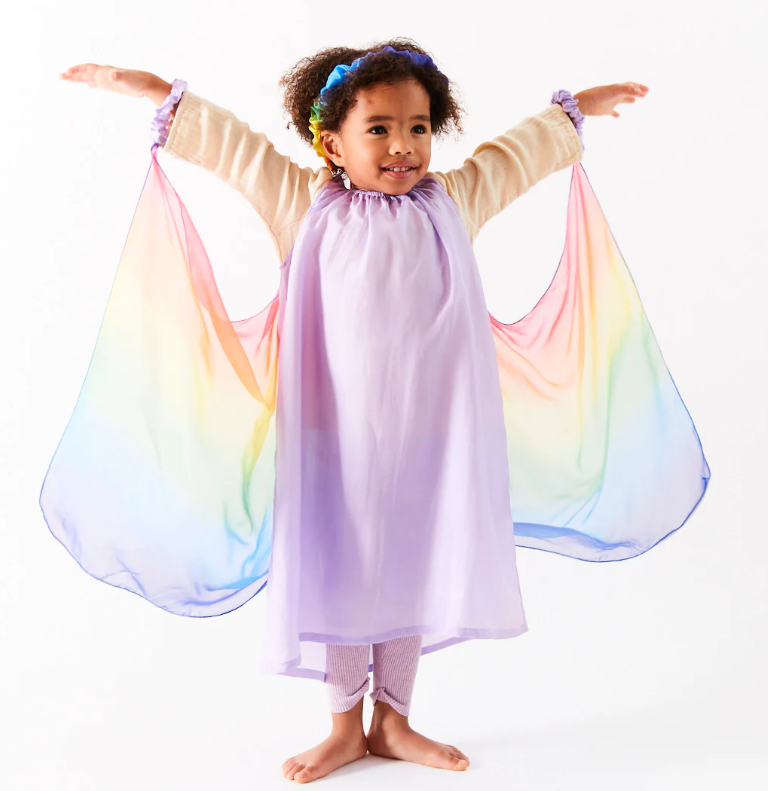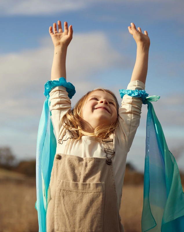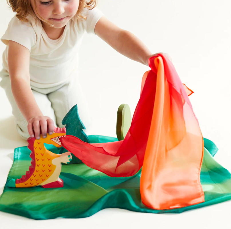 Na materiálu záleží, a to především dětem, které milují hebké a hedvábné látky, které jsou zkrátka příjemné na dotek. Proto u nás najdete také hedvábné hračky značky Sarah's Silks, jako jsou hedvábné šaty, ouška, věnečky, šátky a další kostýmové doplňky. V hedvábném sortimentu si vyberou především malé princezny a víly, kterým se líbí hedvábné pláště a duhové závoje, značka ale nabízí i kostýmy pro kluky. Kromě kostýmů máme i tematické hedvábné šátky, které slouží jako hrací plocha.