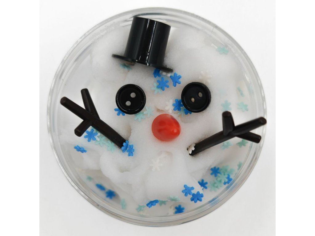 150g hedvábného slizu, konfety, dekorace 6ks k dotvoření sněhuláka.