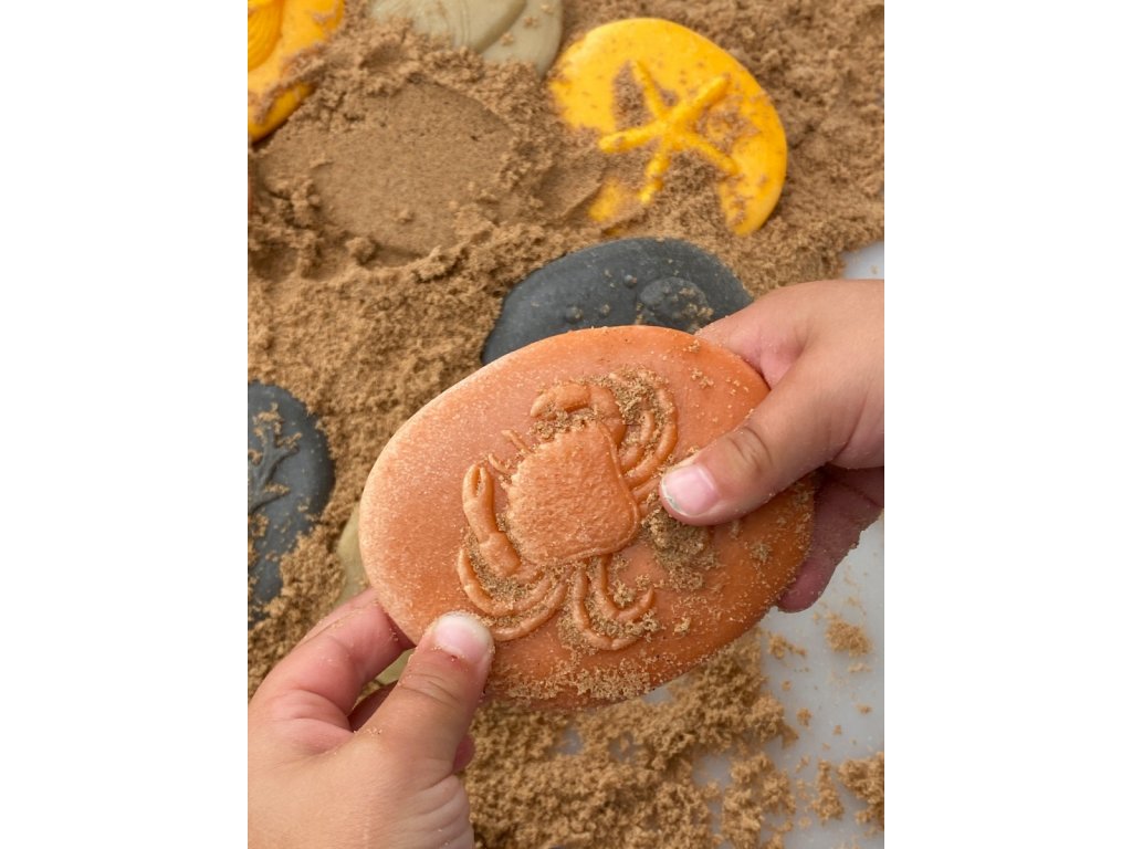 Nechte se přenést do oceánu a prozkoumejte lákavou flóru a faunu mořského pobřeží s těmito hmatovými kameny od Yellow Door. Odolné pro použití v jejich přirozeném prostředí, ve vodě a písku, jsou ideální pro venkovní objevy a investigativní hry a lze je snadno vyčistit pro další dobrodružství! Kameny využijete samozřejmě i do modelíny a do kinetického písku. Také je můžete položit pod papír a pastelkami obtisknout.