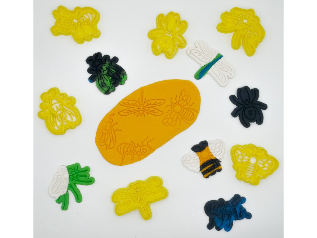 Sada obsahuje 6ks vykrajovátek- včelu, mouchu, komára, vážku, pavouka, mravence