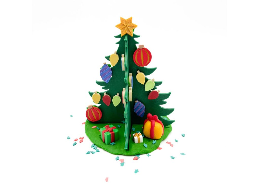 V posledním pytlíčku děti čeká velké finále adventu: krásný 3D stromeček, ozdoby, dárečky a Mamolína jako zelený podklad.