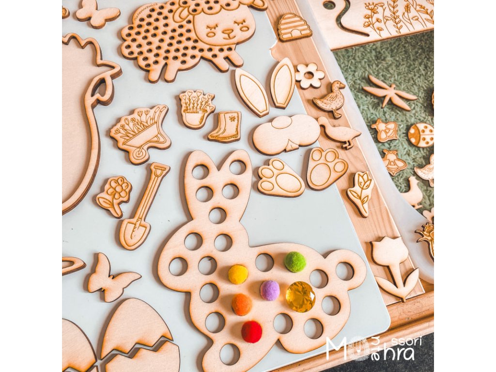 Tato kreativní sada, kterou můžete využít na mnoho způsobů, rozvíjí jemnou motoriku a děti se zaručeně zabaví. Dřevěný set je ideální pro smyslové hraní na téma Jaro.