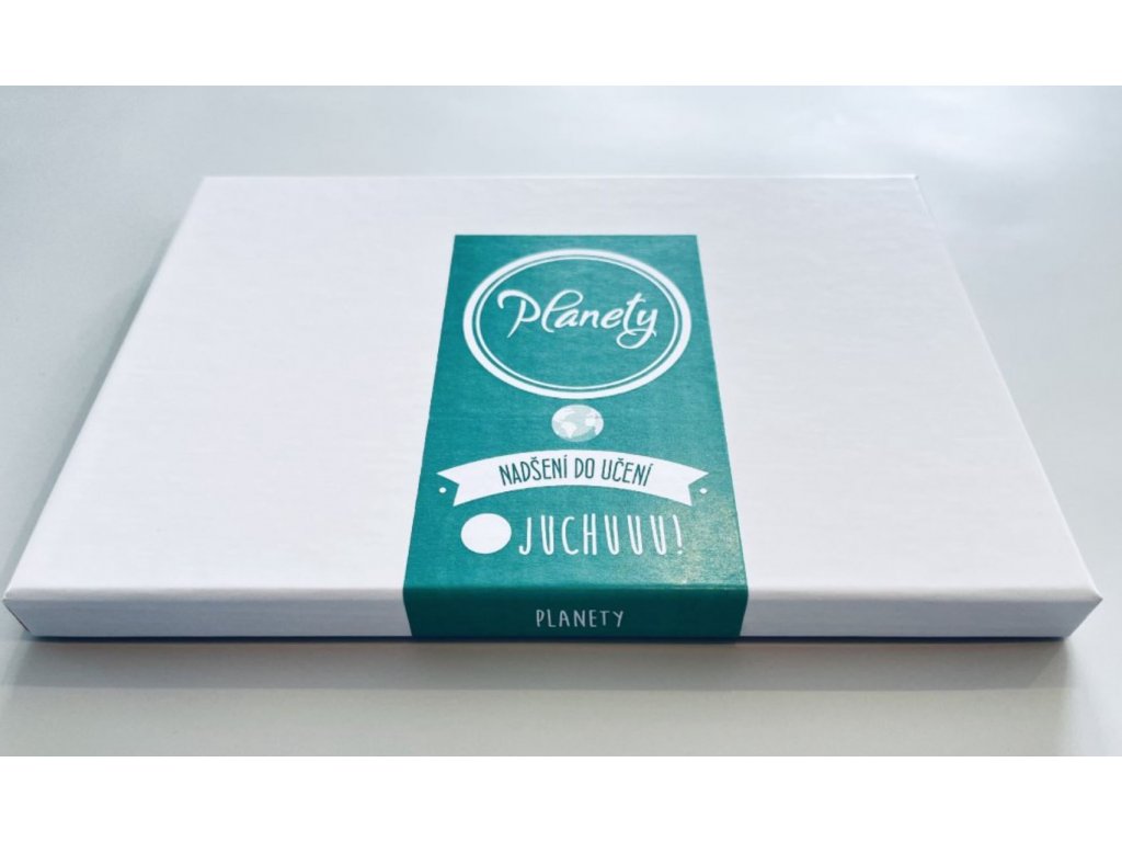 Představujeme úžasné průhledné karty s planetami sluneční soustavy. Sada obsahuje 8 karet velikosti A5 a jednu menší kartičku pro kontrolu planet.