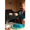 UPOZORNĚNÍ: Modrý a tmavě zelený kineťáček může barvit ruce, které lze snadno omýt mýdlem. Mohou obarvit také podložku, proto je vhodné nejdříve vyzkoušet, jak lze omýt. Máme zkušenost, že kovový tác jde dobře, plastový PlayTray je potřeba vzít speciálním čističem.