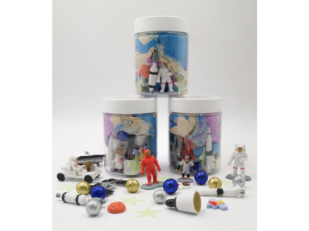 Kinetický písek je oblíbeným smyslovým materiálem jak u dětí, tak u dospělých. Tato dóza navíc obsahuje hračky, které dělají hru zajímavější. Vesmírné téma je zajímavé především pro starší děti, které baví poznávání světa.