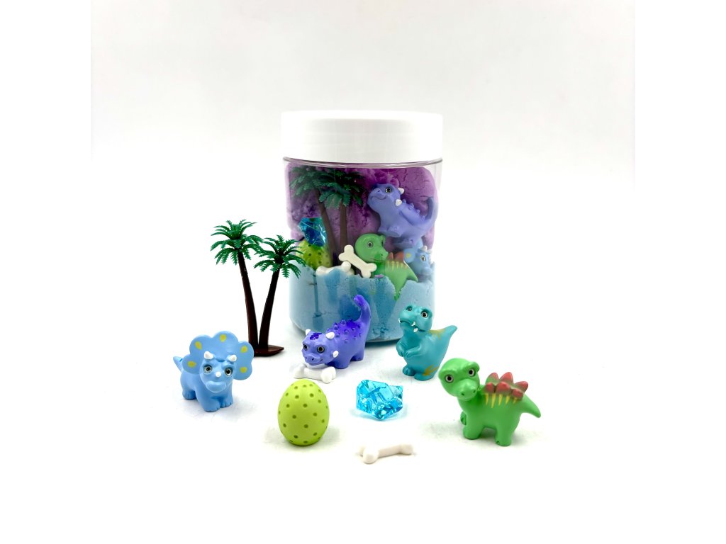 Kinetický písek je oblíbeným smyslovým materiálem jak u dětí, tak u dospělých. Tato dóza obsahuje 4 roztomilé figurky dinosaurů a vše, co rozvine hru s nimi.