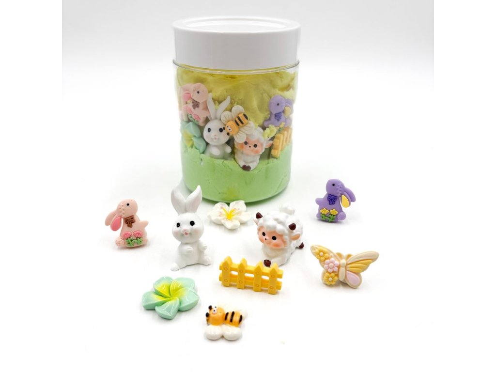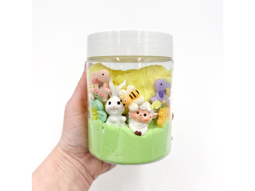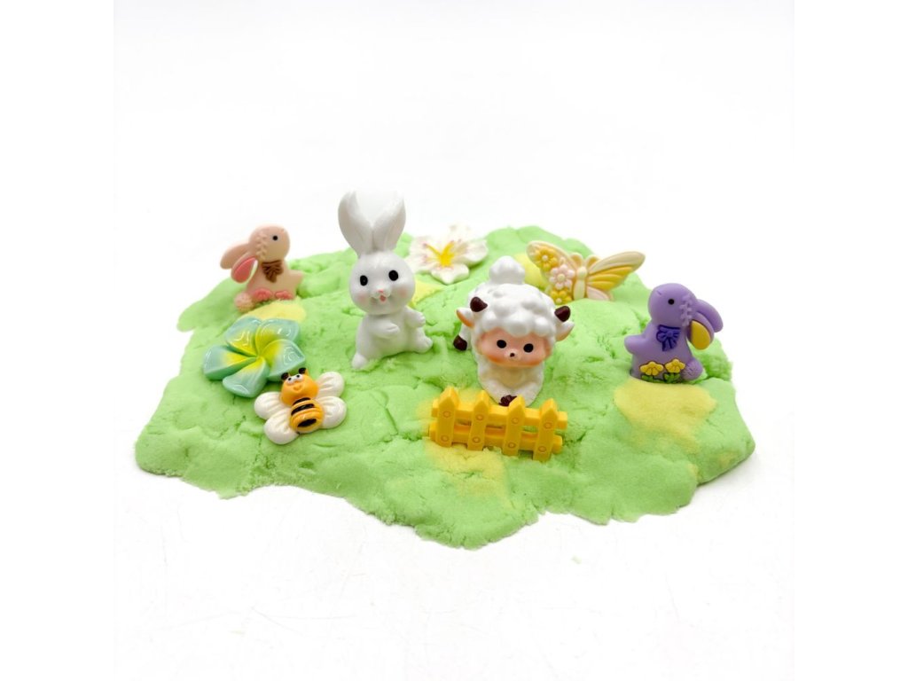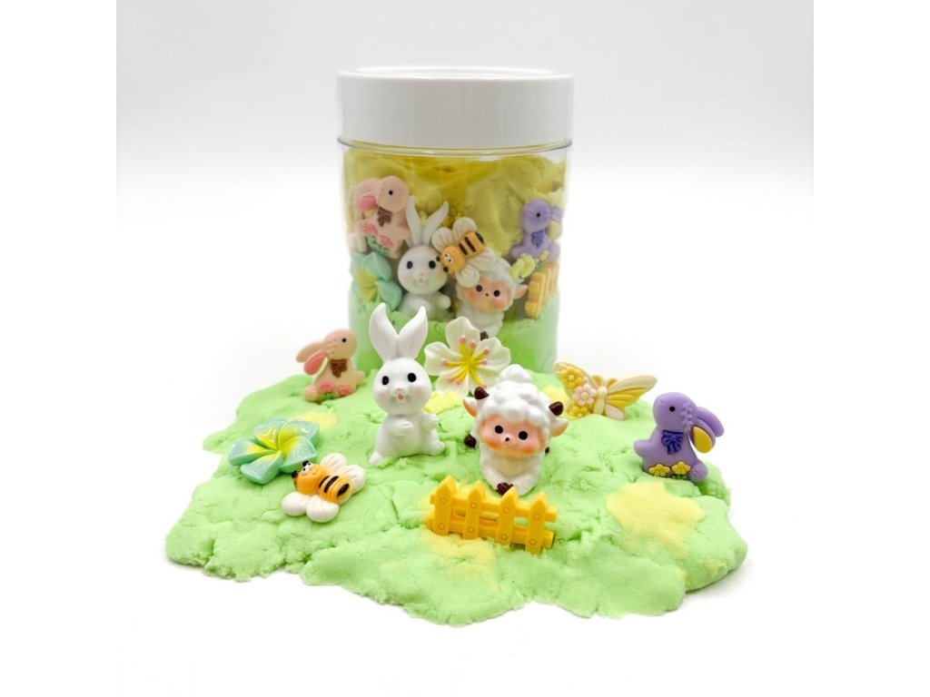 Kinetický písek je oblíbeným smyslovým materiálem jak u dětí, tak u dospělých. Tato dóza navíc obsahuje hračky, které dělají hru zajímavější. Dóza obsahuje vše, co jaro přináší - včelku, motýla, zajíčky, beránka i květinky.