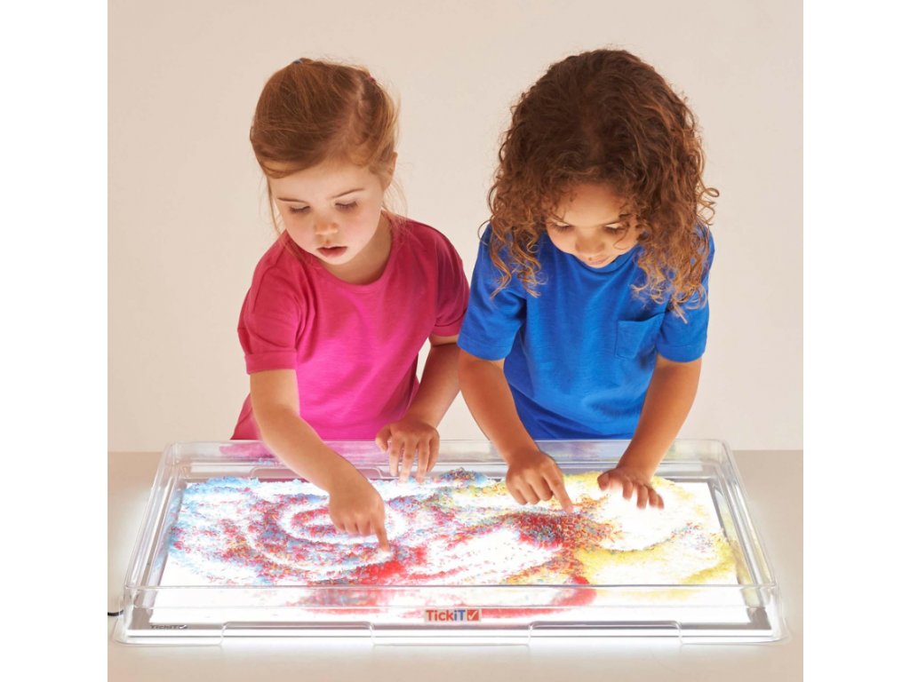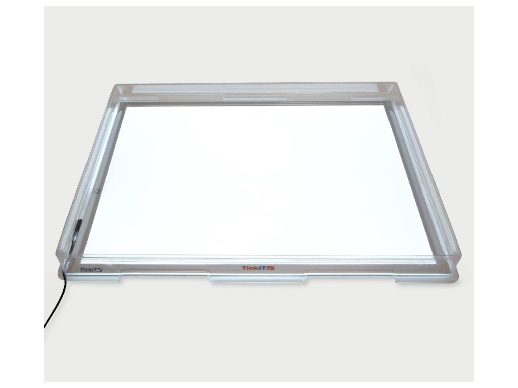 Kryty světelných panelů od TickiT® jsou dokonalým doplňkem k bílým světelným panelům. Dokonale se hodí k vytvoření velkého, průhledného, mělkého zásobníku na různé zajímavé umění, řemesla, patlavé hry, smyslové hry a hry s malým světem, které vašemu dítěti umožní osvětlit předměty a tekutiny s různými texturami a plynulostí.