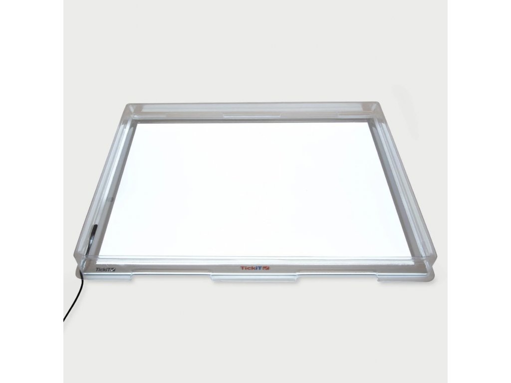 Kryty světelných panelů od TickiT® jsou dokonalým doplňkem k bílým světelným panelům. Dokonale se hodí k vytvoření velkého, průhledného, mělkého zásobníku na různé zajímavé umění, řemesla, patlavé hry, smyslové hry a hry s malým světem, které vašemu dítěti umožní osvětlit předměty a tekutiny s různými texturami a plynulostí.