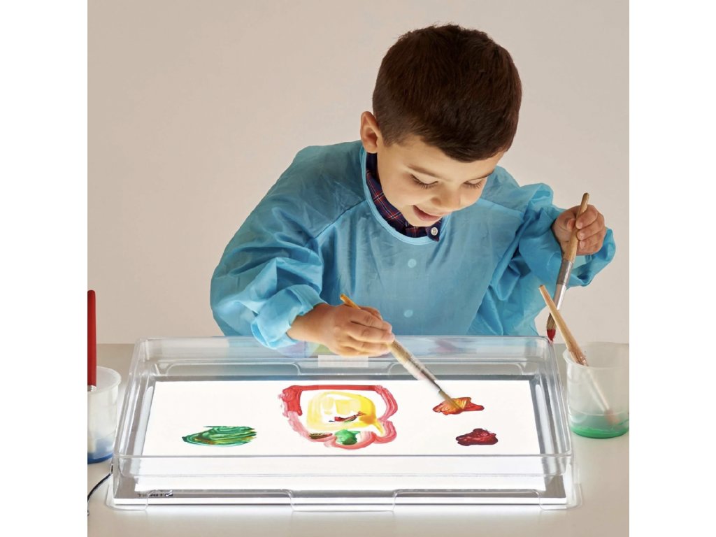 Tento kryt je skoro nezbytným doplňkem ke Světelný panel Light Table A3 .Umožní udělat smyslohraní ještě zábavnější a zajímavější. Pro mokré a tekuté, či patlavé aktivity je výborným pomocníkem, snadno se díky němu uklízí.