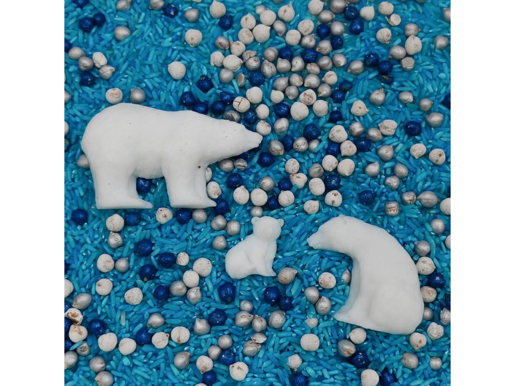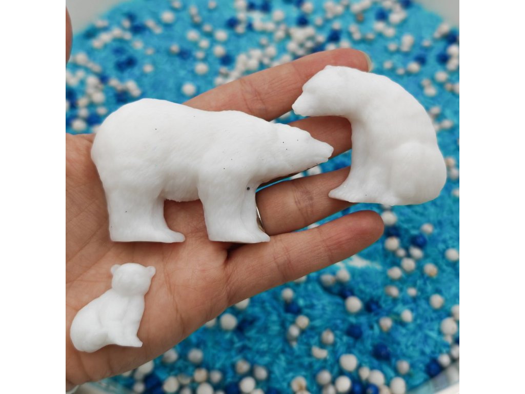 Pryskyřicoví lední medvědi krásně oživí vaše zimní hraní a navodí zimní atmosféru. Děti je mohou hledat v nachystaném smyslovém materiálu, či obtiskávat do modelíny. Využijete je také do adventního kalendáře.