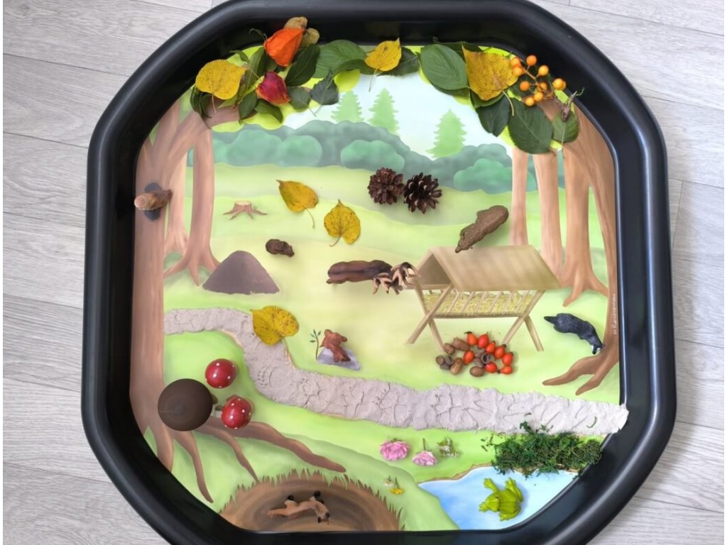 Vložka do Tuff Tray Vám usnadní a urychlí přípravu sensory play na lesní téma. Využijte obrázek jako šablonu pro senzorický materiál, nebo jako náhradu některého z nich. Fantazii se meze nekladou, a tak může být každá hra jiná!