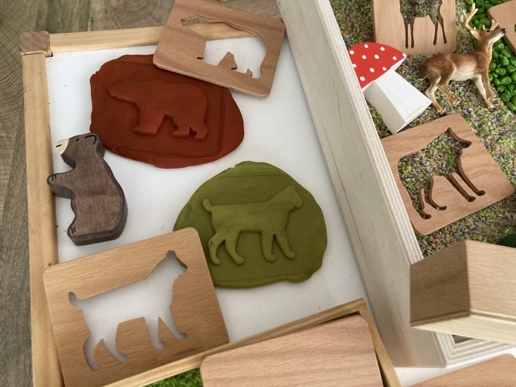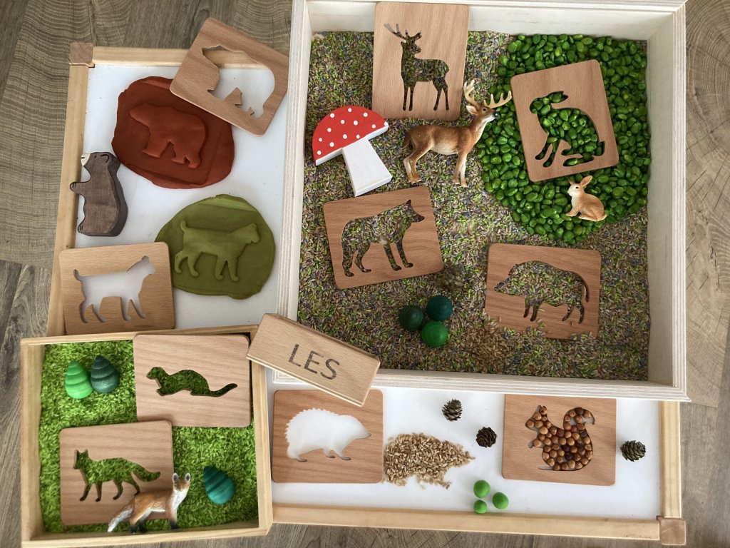 Kartičky využijete při hře skrze smysly. Sypáním rýže nebo obarvené soli či cizrny získáte krásné obrázky zvířátek, můžete výřezy vystlat modelínou nebo je v ní obtisknout. K destičkám můžou děti přiřazovat figurky nebo obrázky. Skvělé budou na obkreslování a na hraní se stíny! A samozřejmě v neposlední řadě na poznávání lesního světa.