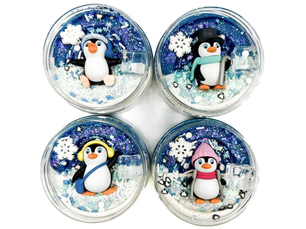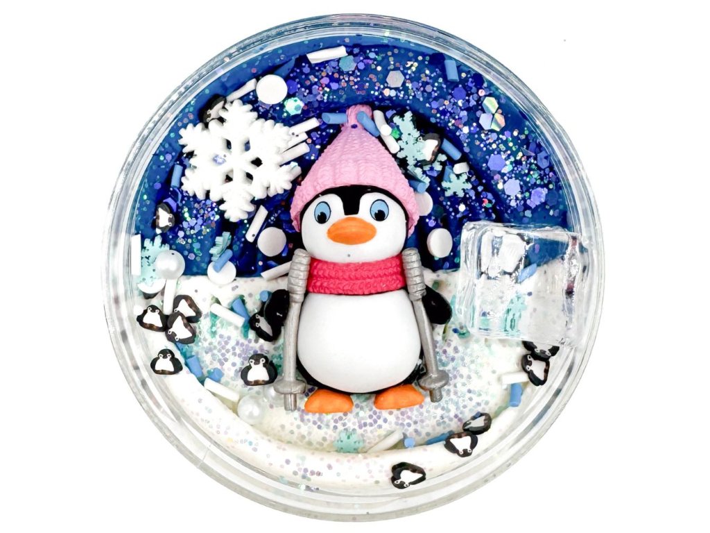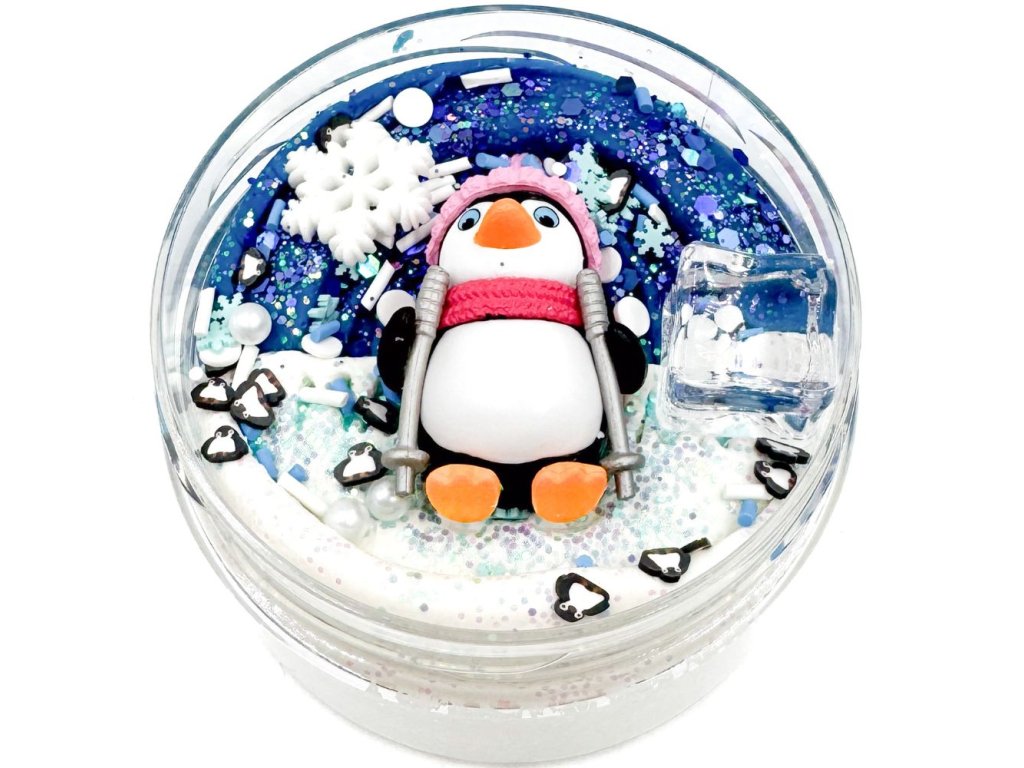 Nádherná třpytivá zimní mamolína s figurkou roztomilého tučňáka potěší jistojistě vaše děti.