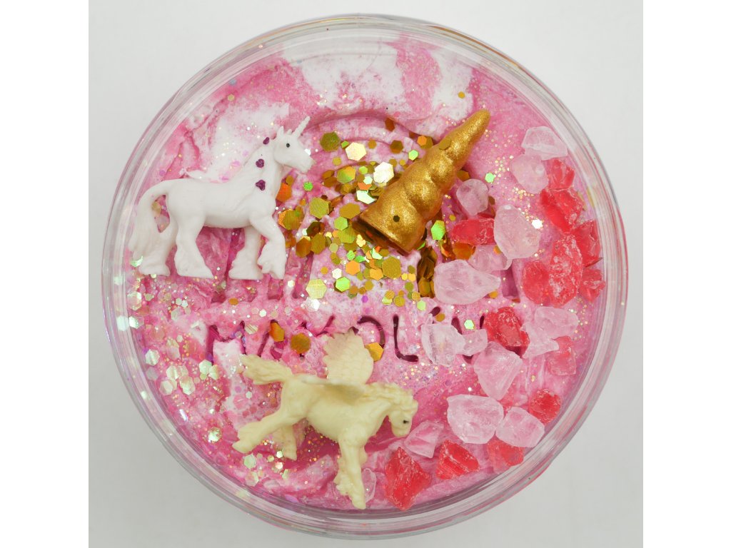 250g měkkoučké dvoubarevné domácí modelíny, 2 druhy třpytek, figurka jednorožce, pegase, roh, dekorativní kamínky