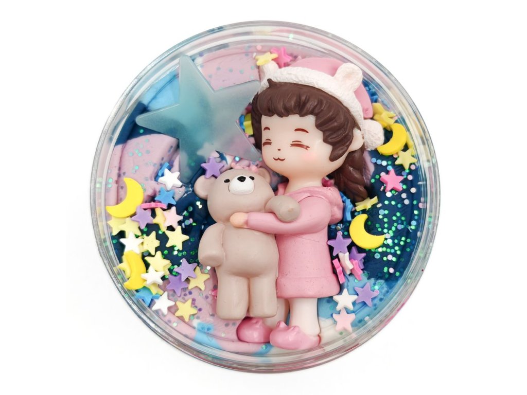 250g domácí čtyřbarevné modelíny, třpytky, konfety, postavička dívky či chlapce (možnost si vybrat), svítící hvězdička