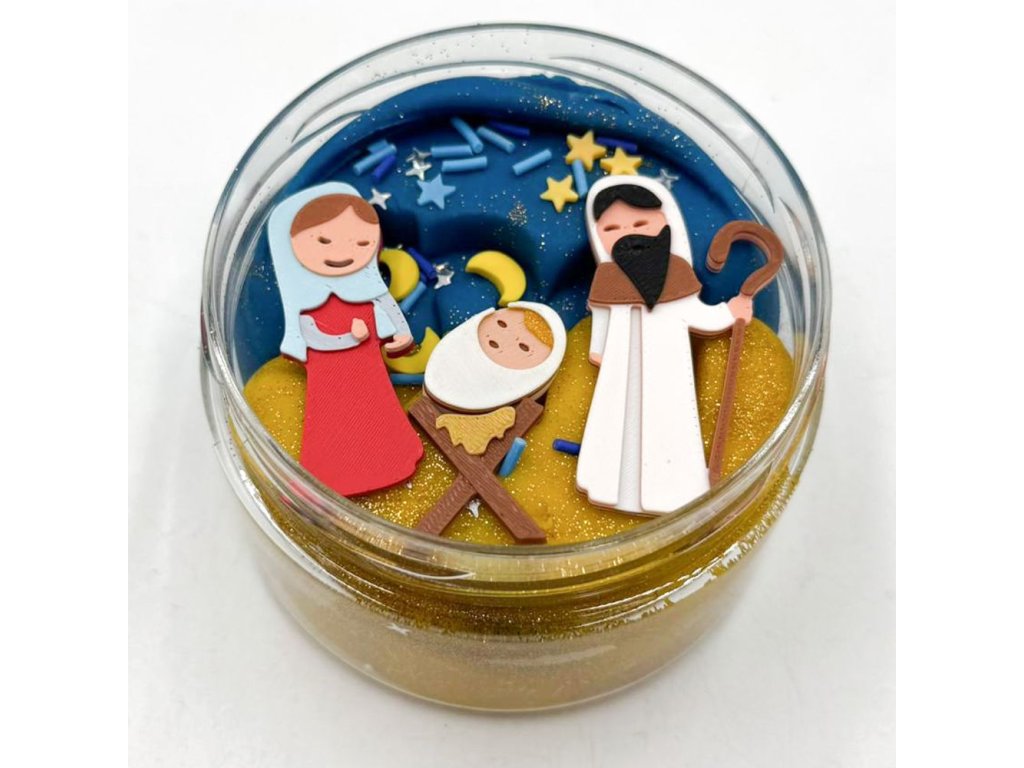 250g měkkoučké dvoubarevné domácí modelíny, třpytky, konfety, námi vytvoření eco PLA Marie, Josef, jesličky a Ježíšek