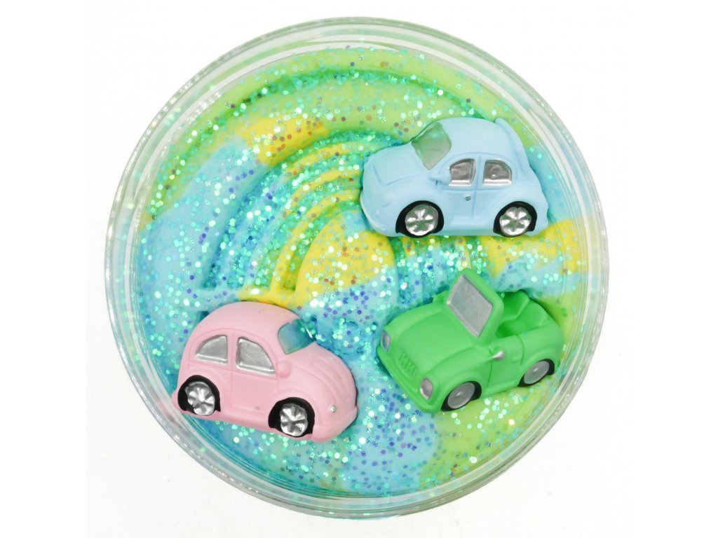 250g domácí tříbarevné pastelové modelíny, třpytky, auta 3ks