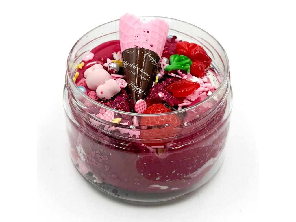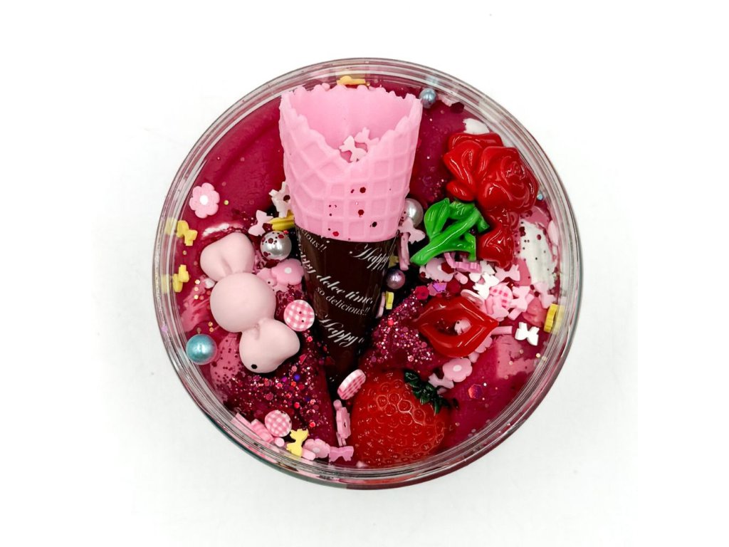 250g domácí tříbarevné modelíny, třpytky, konfety, kornoutek, pusinka, bonbonek, jahůdka a růžička.